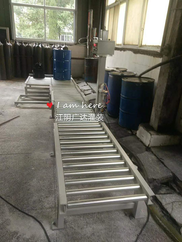 近期一批200L稱(chēng)重式灌裝線,陸續(xù)到達(dá)客戶車(chē)間,本套灌裝線人工上桶、自動(dòng)計(jì)量灌裝、移位輸送成4通,便于碼垛。下面貼幾張現(xiàn)場(chǎng)圖片: